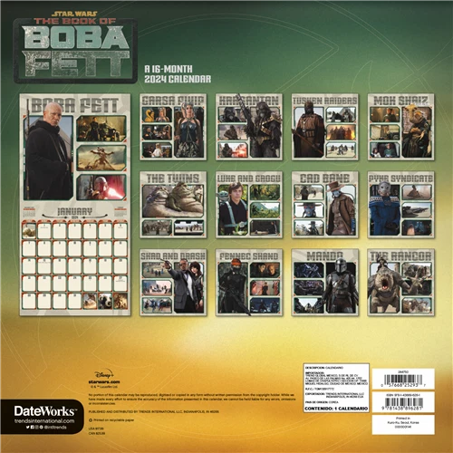 STARS WARS: BOOK OF BOBA 2024 WALL CALENDAR BRAND NEW 244750