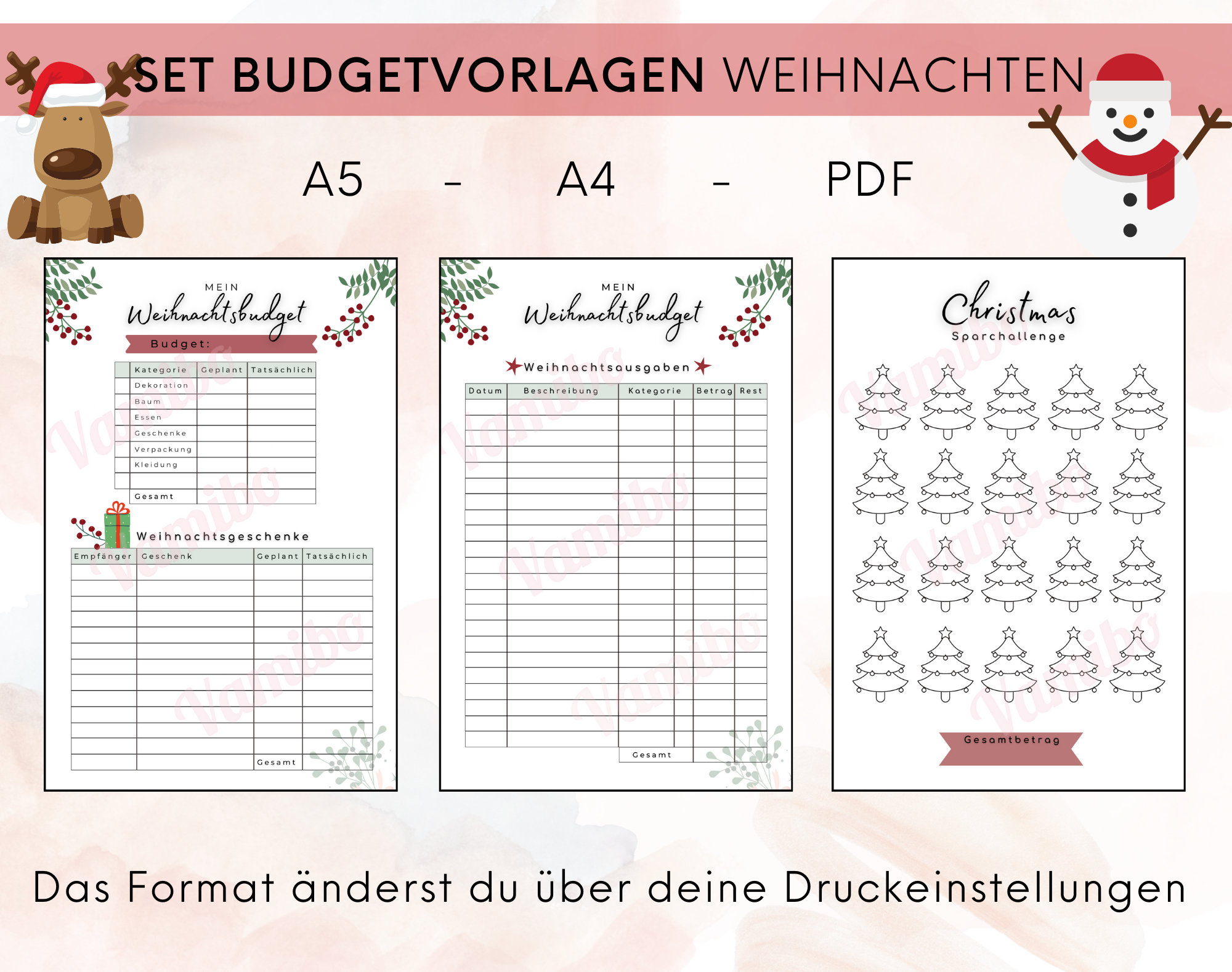 Weihnachtsbudget Set Umschlagtracker Christmas Budget Etsy